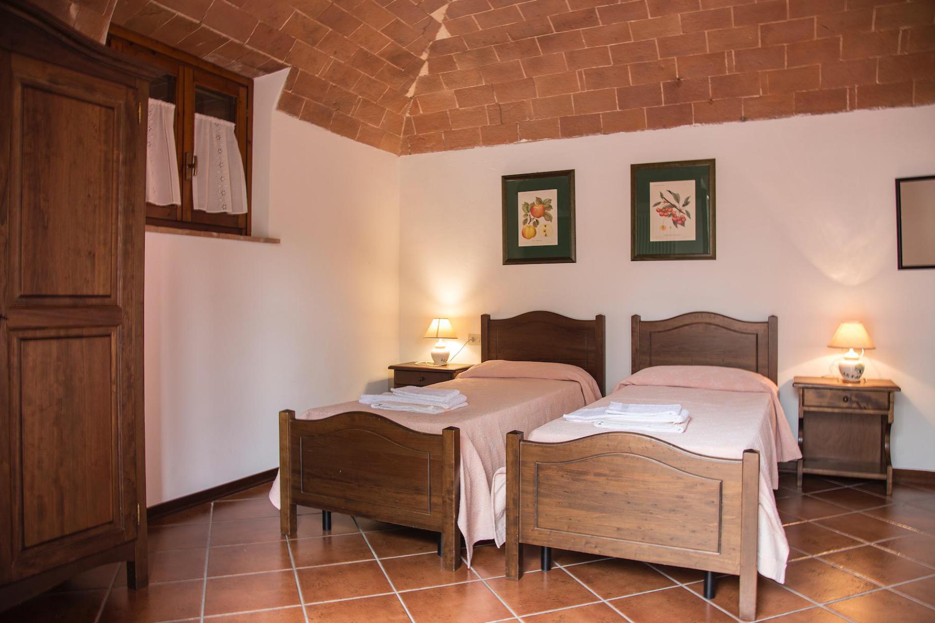 Nell’edificio centrale ci sono 3 appartamenti al piano terra e 4 al primo piano; tutti sono molto spaziosi e tutti hanno tavolo e sedie all’esterno. Alcuni sono bilocali, con una camera da letto e un divano letto nel soggiorno, altri sono invece trilocali con due camere da letto. Lo stile è tipicamente toscano con soffitti a volte e un’atmosfera contadina. Alcuni appartamenti hanno la lavastoviglie. C’è una lavatrice in comune, mentre la casa più grande ne ha una privata.