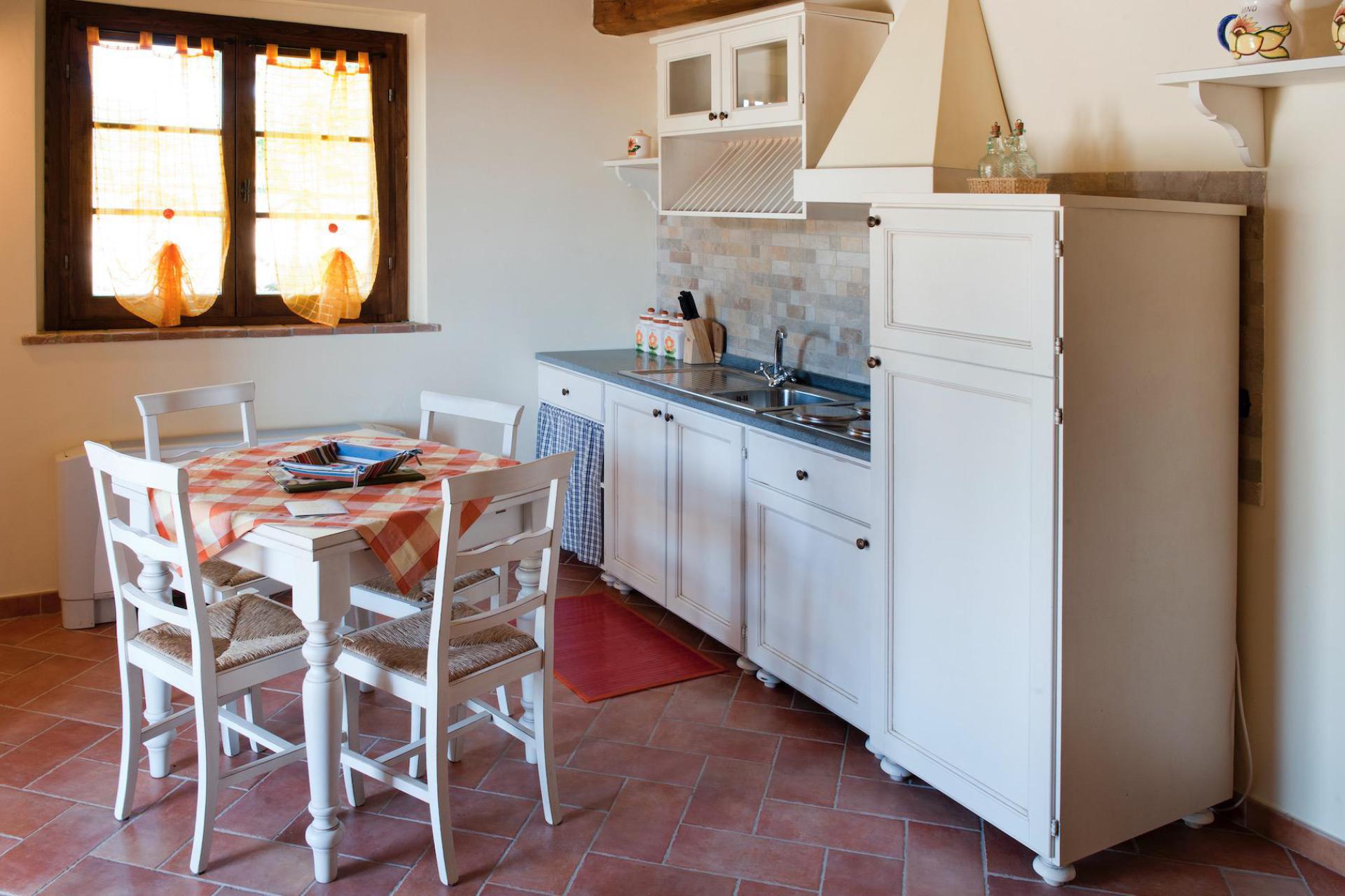 Tutti gli appartamenti dell’agriturismo sono in stile rustico toscano. Alcuni sono a piano terra, altri al primo piano e alcuni si sviluppano internamente su due piani. Ci sono bilocali e trilocali e ogni appartamento ha una zona esterna con tavolo e sedie. Alcuni sono cottage indipendenti mentre altri fanno parte di un casale condiviso.