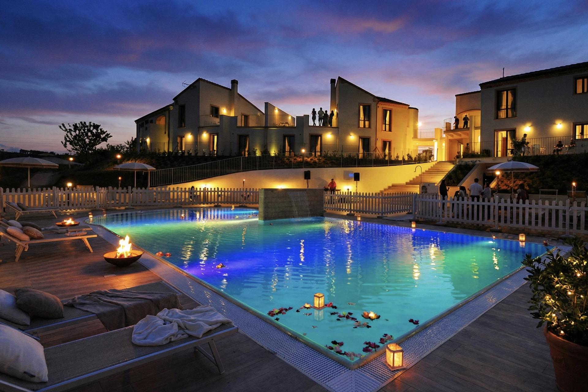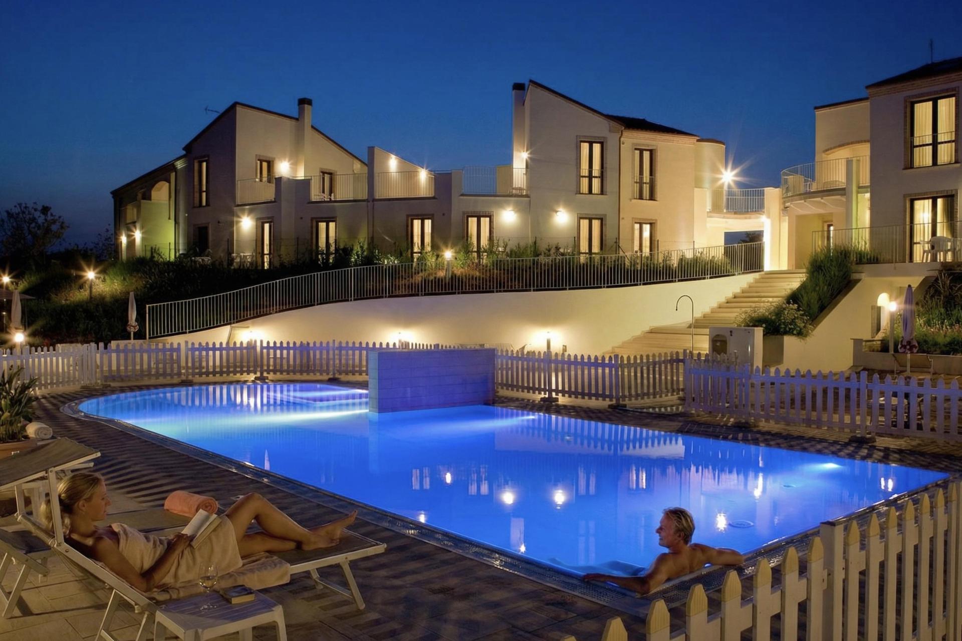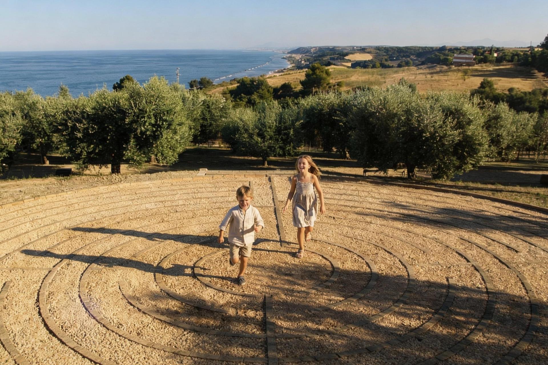 L'agriturismo ha una piscina recintata di 18x7 metri con sdraio, una vasca idromassaggio e una zona poco profonda per i bambini e durante la notte è splendidamente illuminata. Nel frutteto di proprietà c'è un percorso, un labirinto (dove si ha una splendida vista sul mare!) e una pista dove si deve camminare a piedi nudi su superfici diverse. Non ho avuto il tempo per provarlo, ma sembra davvero divertente, anche per i bambini! Nel giardino c'è anche un parco giochi con altalene, una struttura per arrampicarsi e uno scivolo.