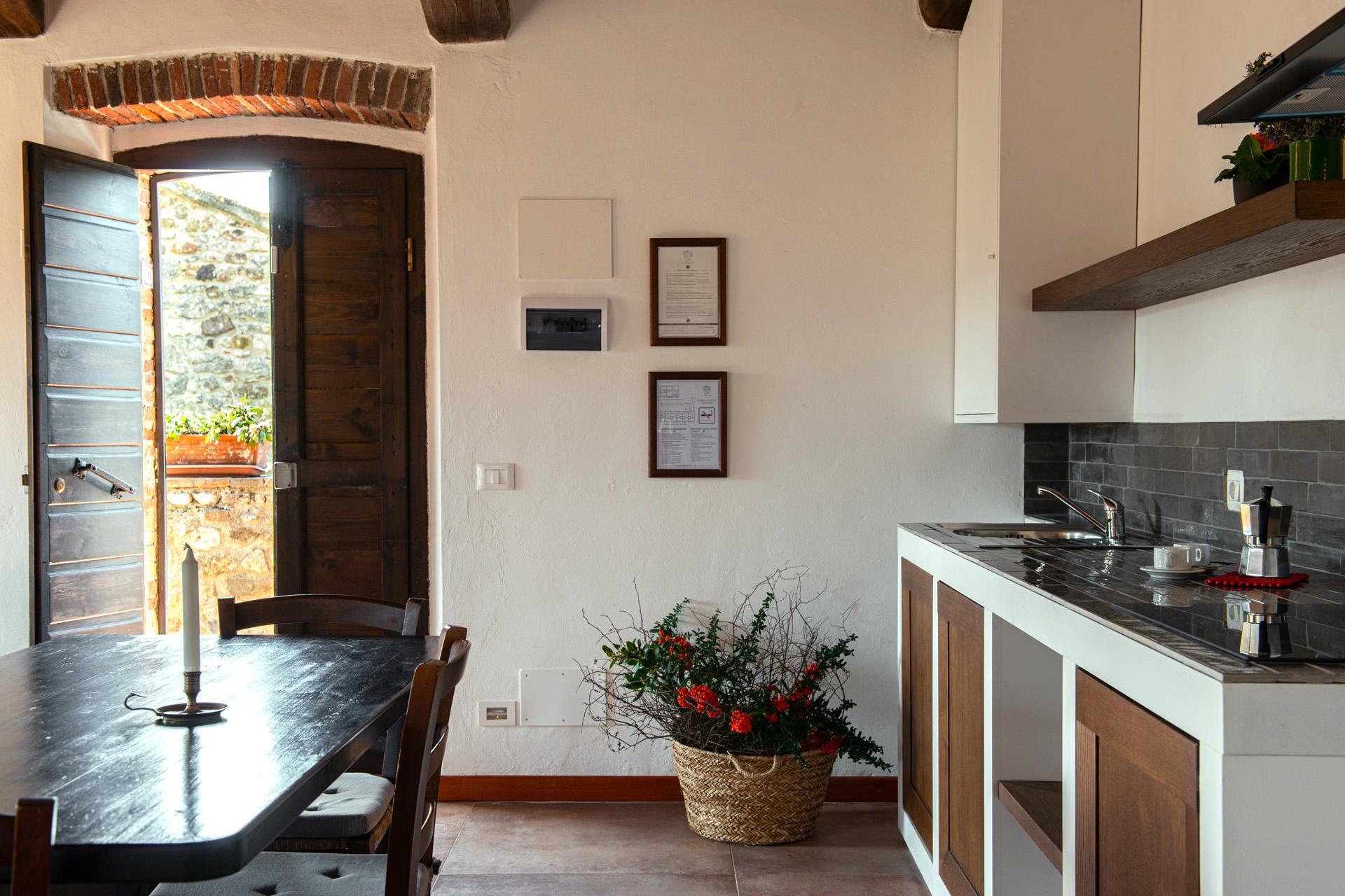 Nei due casali adiacenti si trovano 6 appartamenti bilocali (ciascuno con una camera da letto), tre appartamenti trilocali con due camere da letto e un appartamento più grande con quattro camere da letto per un massimo di otto persone. Gli appartamenti sono arredati con gusto in stile toscano e offrono servizi come aria condizionata, WiFi e accesso ad un giardino in comune dove ogni appartamento ha la propria area salotto.