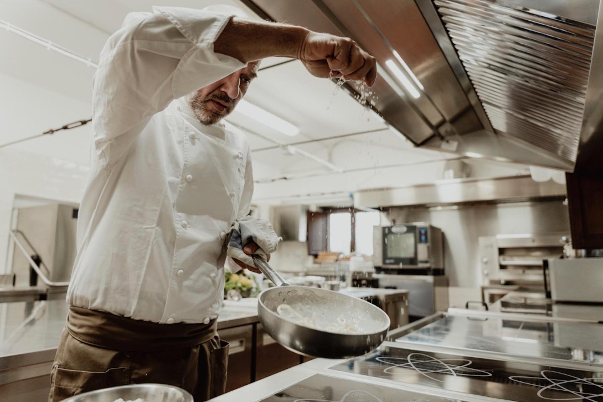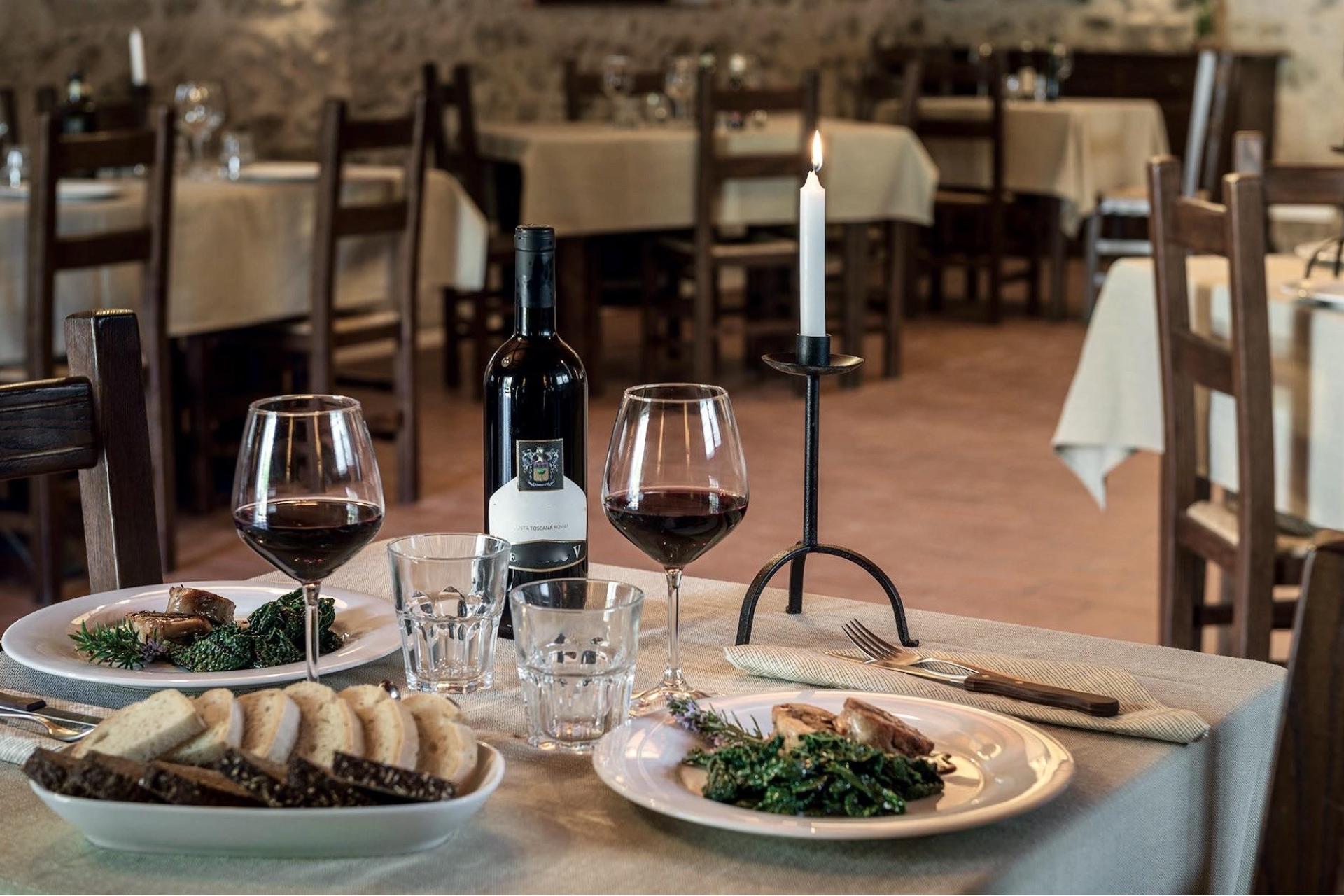 Il ristorante propone piatti preparati con prodotti freschi provenienti dall'agriturismo e dalle aziende agricole locali. La colazione a buffet viene servita su un'ampia terrazza, perfetta per mangiare all'aperto nella bella stagione, oppure nella sala colazione panoramica. Lo chef propone anche laboratori di cucina settimanali, ideali per gli ospiti che vogliono conoscere la cucina toscana.