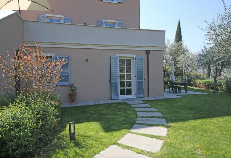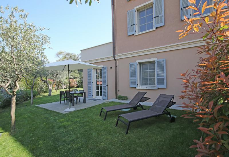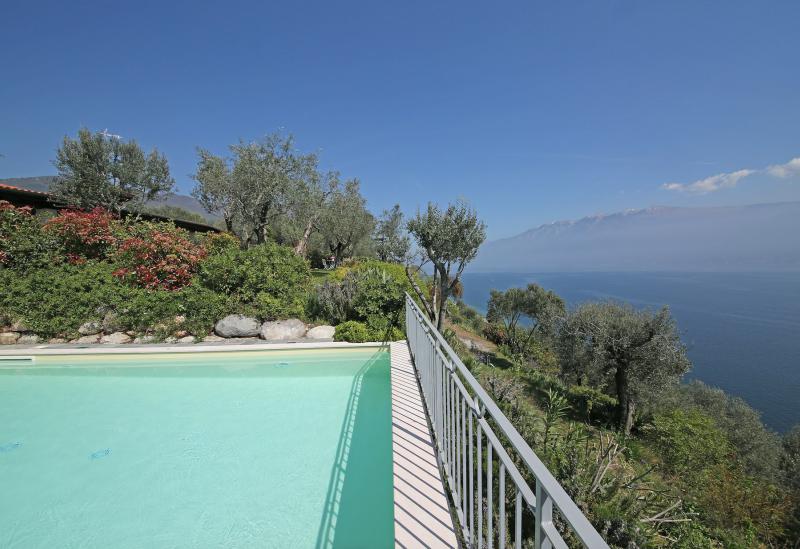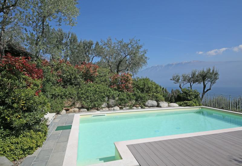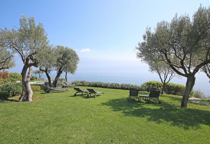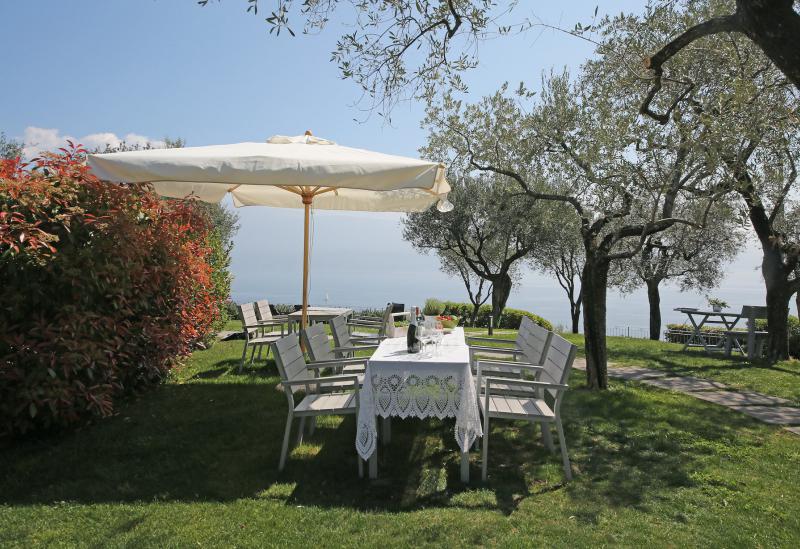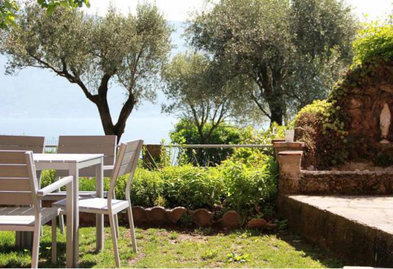 Il giardino della villa, con alberi di ulivo, è bellissimo e c'è una piscina (non molto grande) con lettini. Ai margini del giardino c'è una terrazza solarium con lettini, dove è possibile rilassarsi e godere della vista sul lago di Garda. Dall'altra parte l'agriturismo si affaccia sullo splendido campo da golf a 18 buche con bar e ristorante.