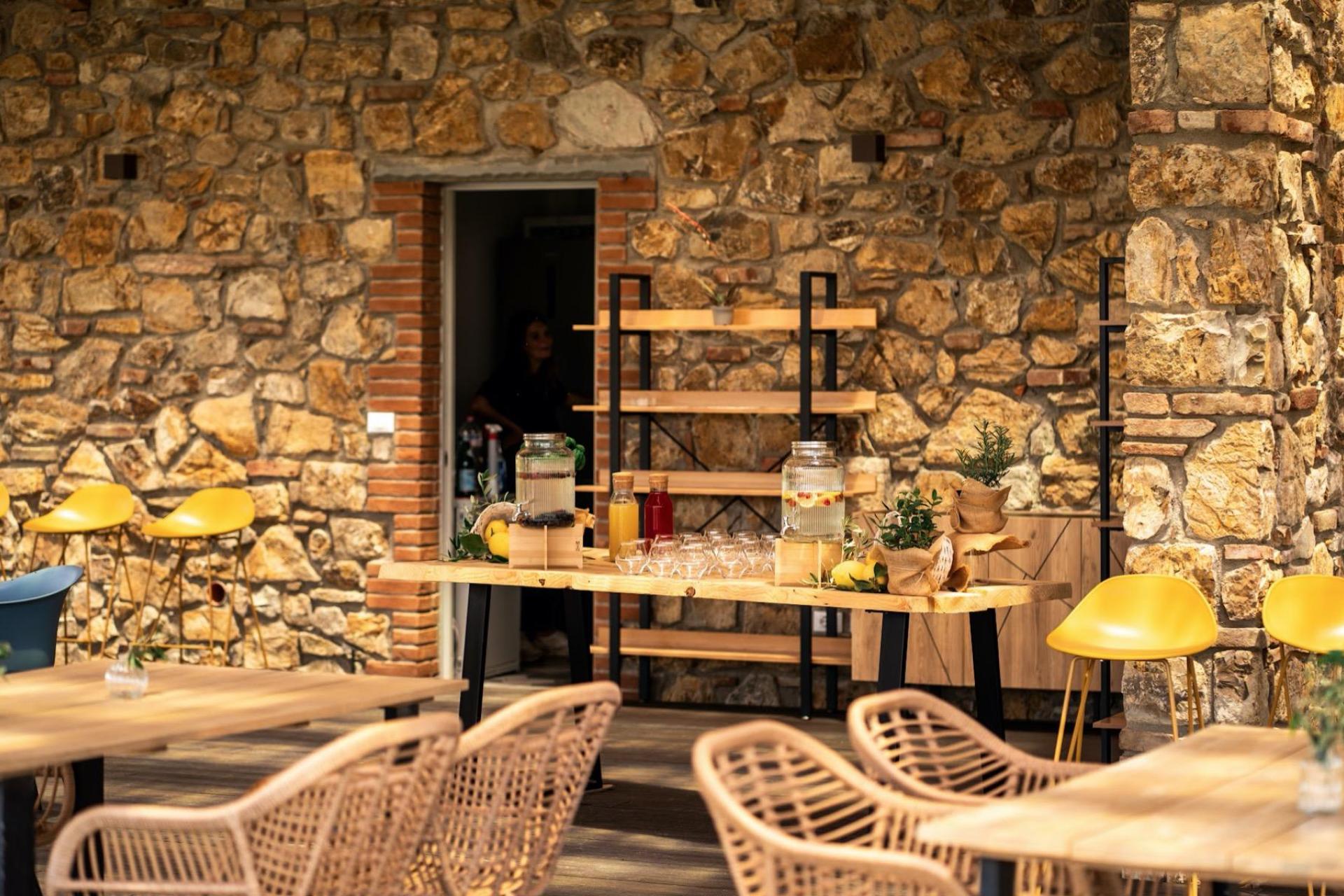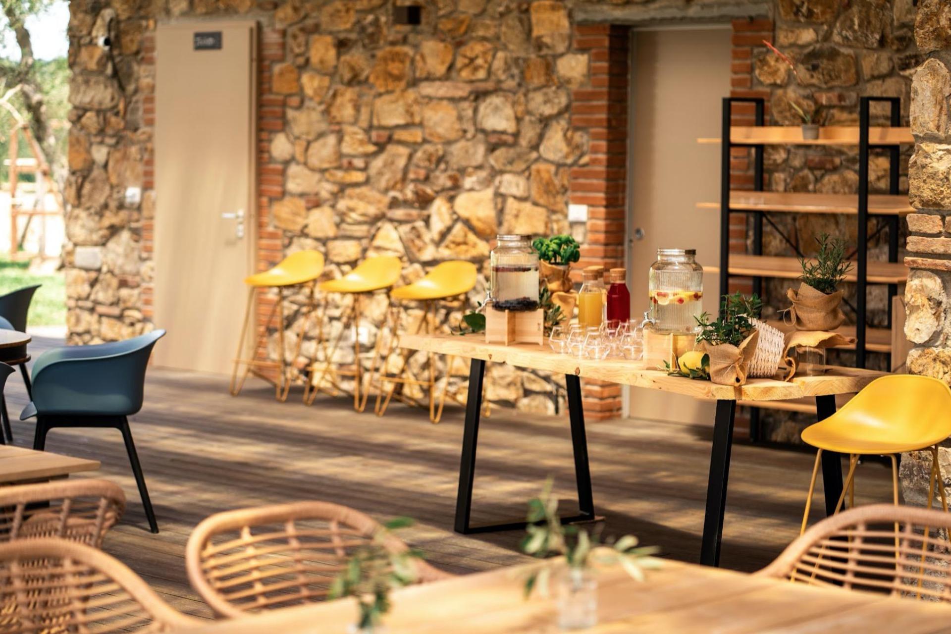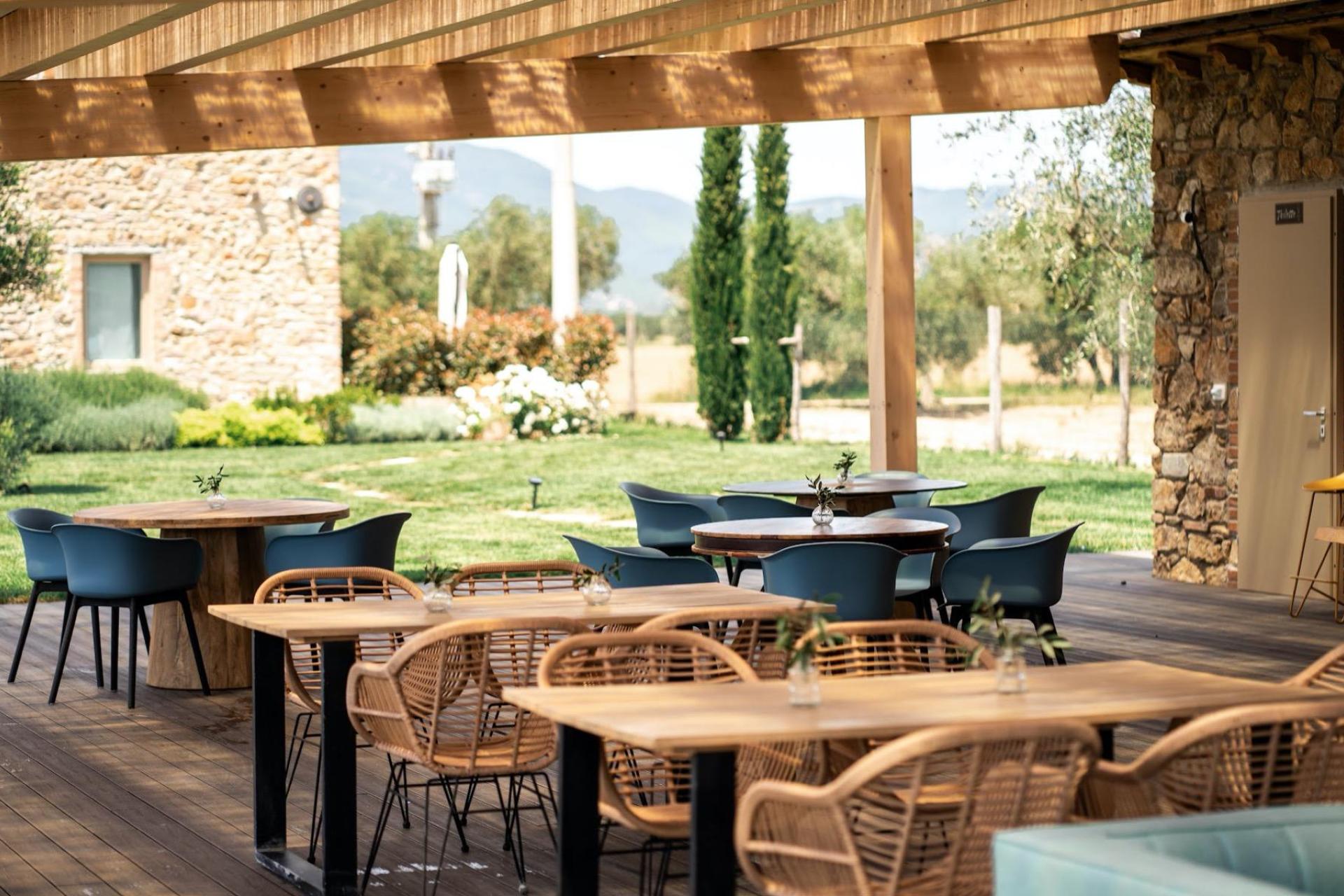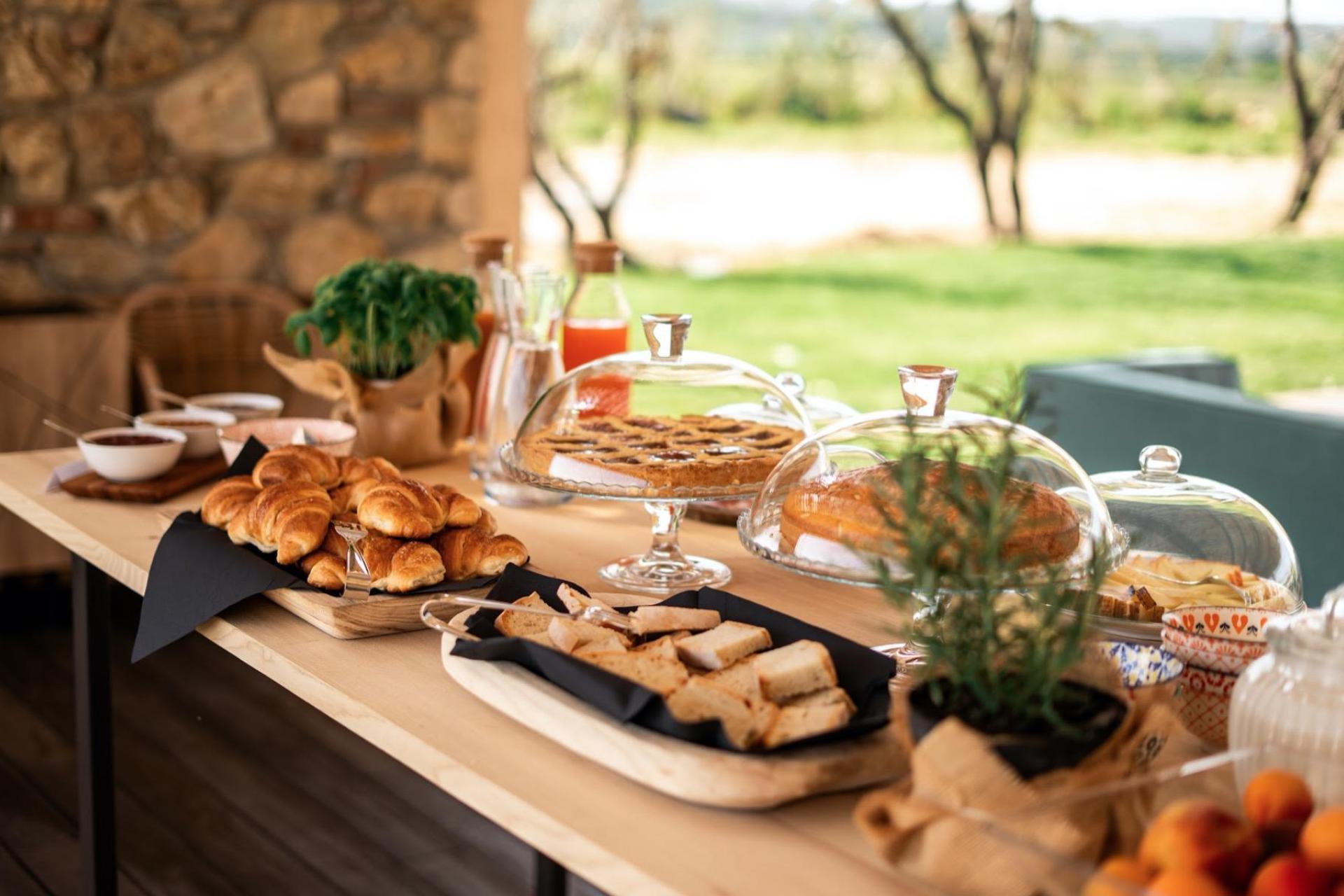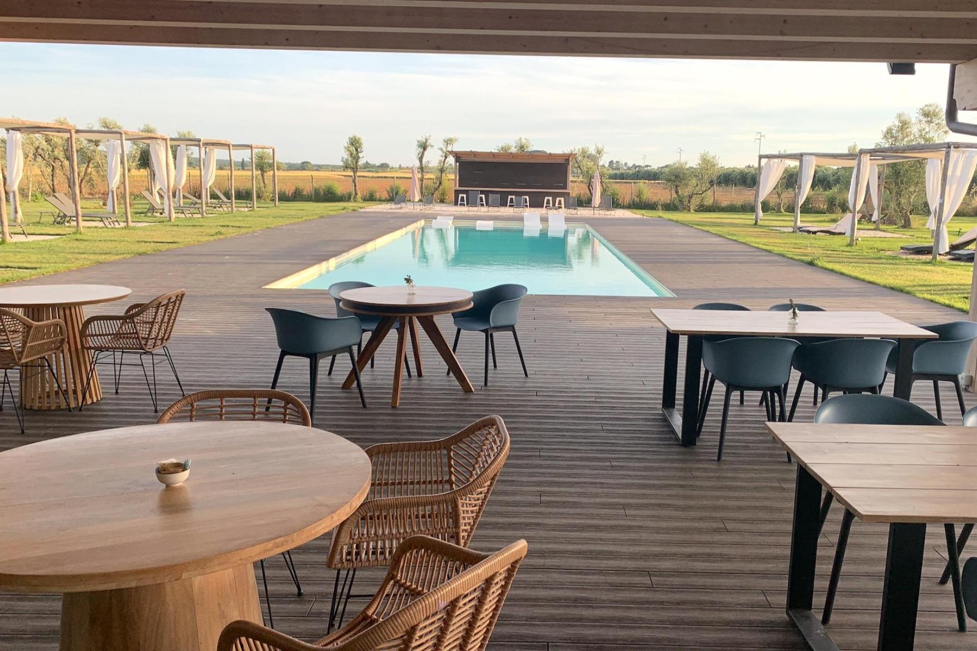 Il cuore dell’agriturismo è l’ampia veranda, che funge anche da reception. Da qui si gode di una splendida vista sulla piscina e sul giardino. In estate offre una piacevole ombra, mentre in primavera e in autunno è un luogo riparato e confortevole. Qui viene servita ogni mattina la colazione, preparata con prodotti della cucina di casa o da piccoli produttori locali. È anche il posto ideale per un aperitivo o per rilassarsi in uno degli angoli salotto. La veranda è aperta giorno e notte e è un luogo conviviale dove conoscere gli altri ospiti e fare due chiacchiere.