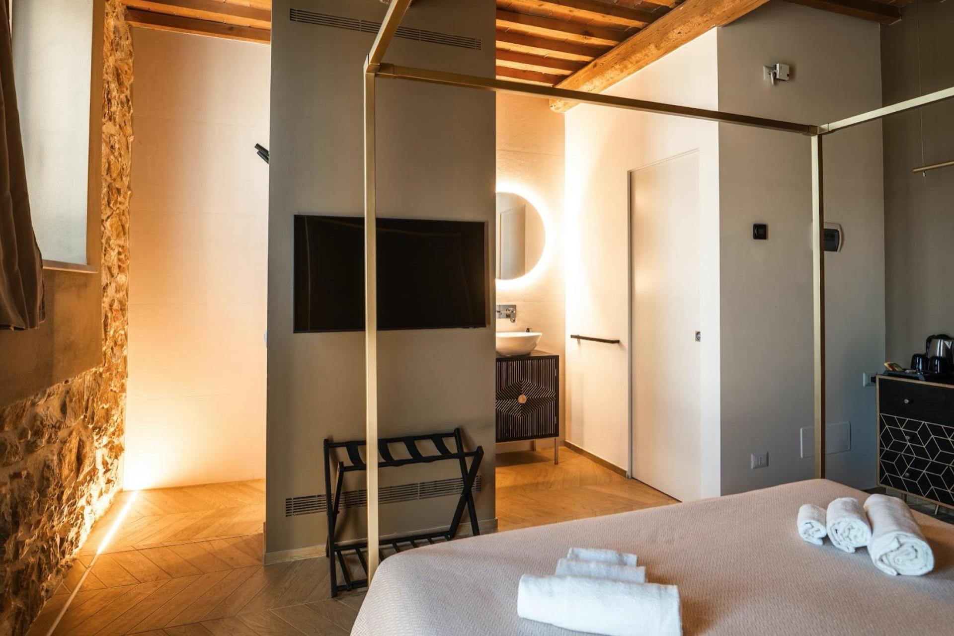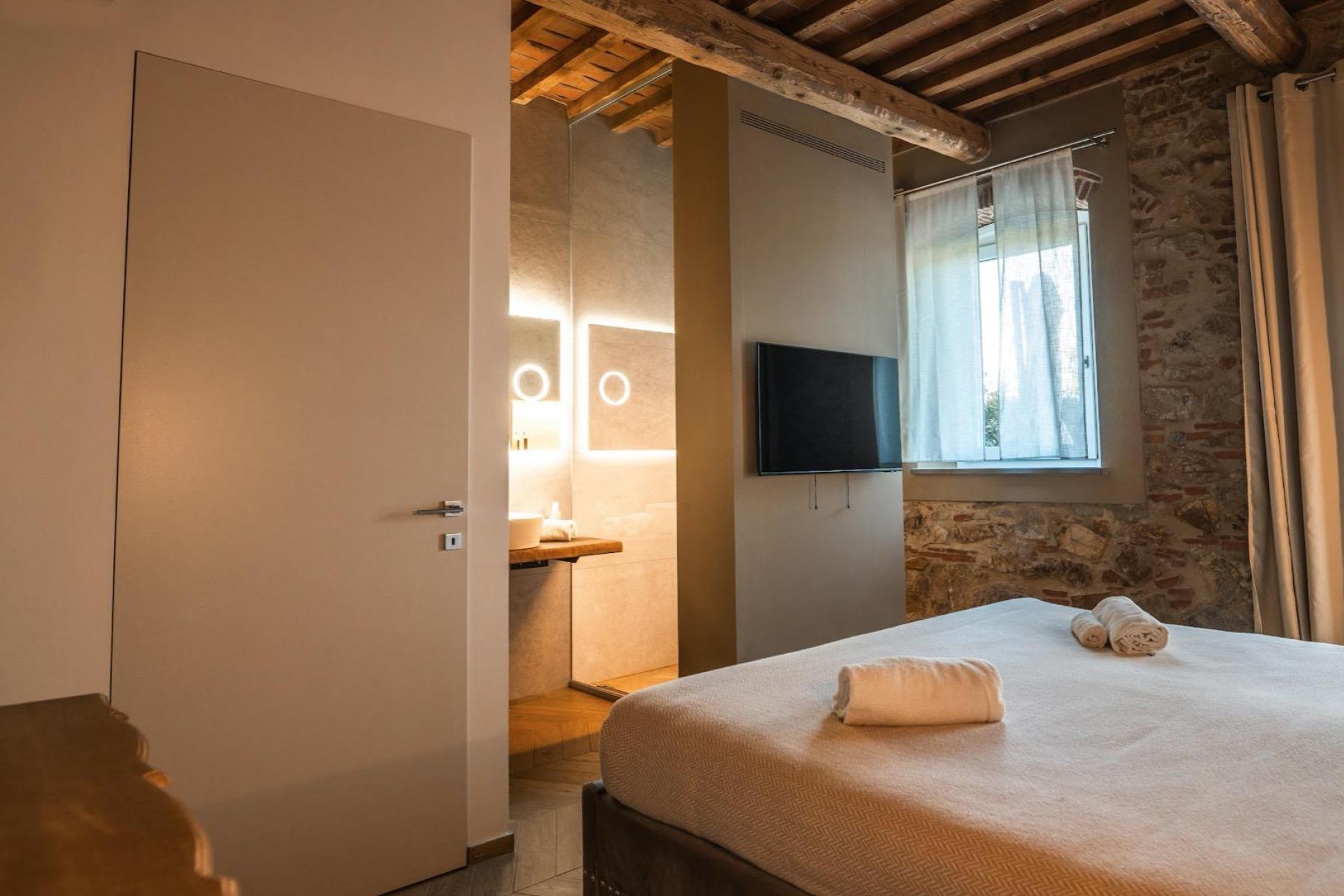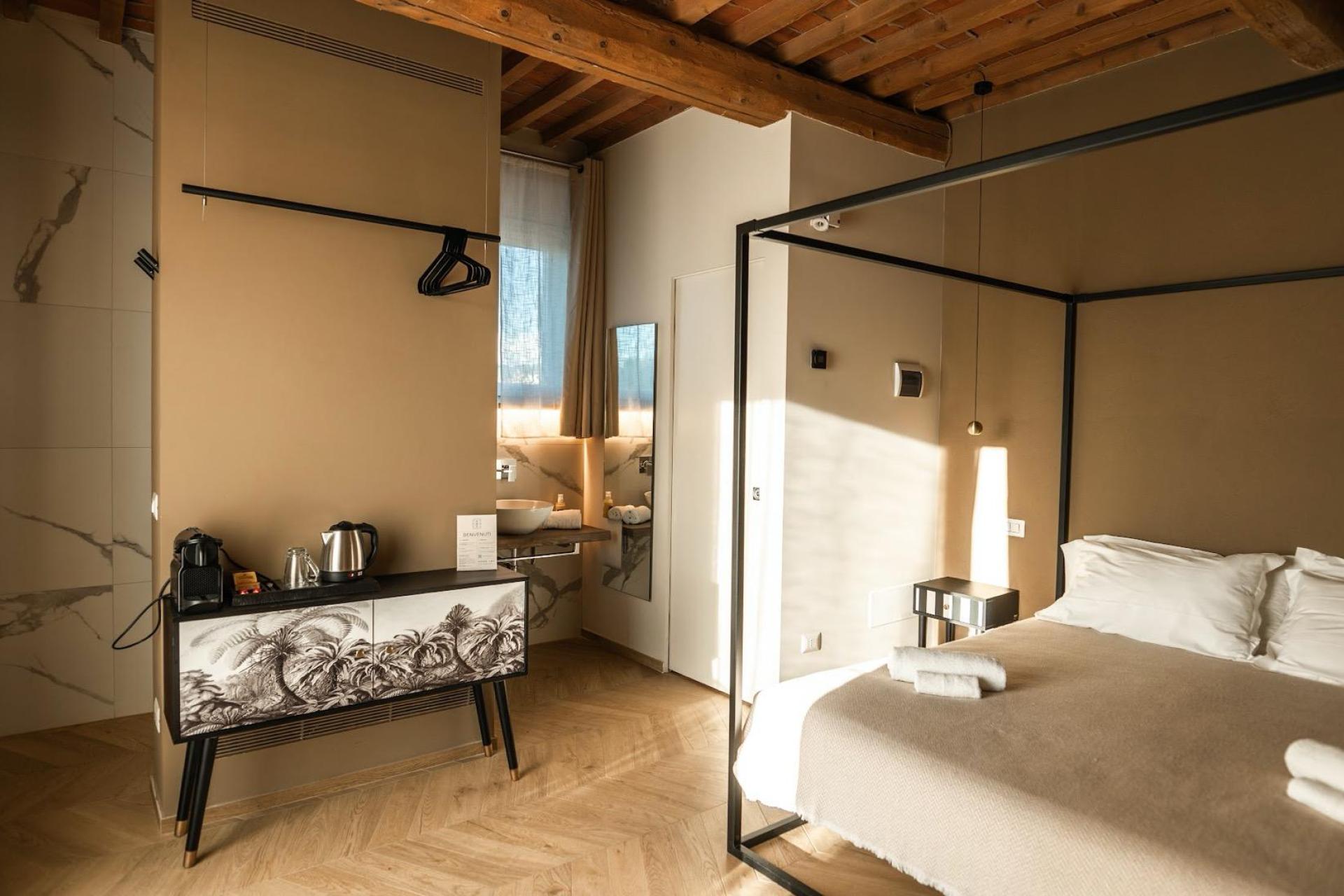 Tutte le camere sono al piano terra e sono arredate con gusto e attenzione ai dettagli, ciascuna con uno stile e tocchi di design propri. Oltre al gazebo privato a bordo piscina, ogni camera dispone di un piccolo terrazzo all’ingresso, con due comode sedie. I bagni moderni a pianta aperta sono armoniosamente integrati nella stanza e dotati di un’ampia doccia a pioggia separata. Completano i servizi aria condizionata, Wi-Fi, TV, asciugacapelli, bollitore con tè biologico e macchina da caffè espresso con capsule. Minibar disponibile su richiesta. In totale ci sono dieci camere, tra cui un cottage indipendente.