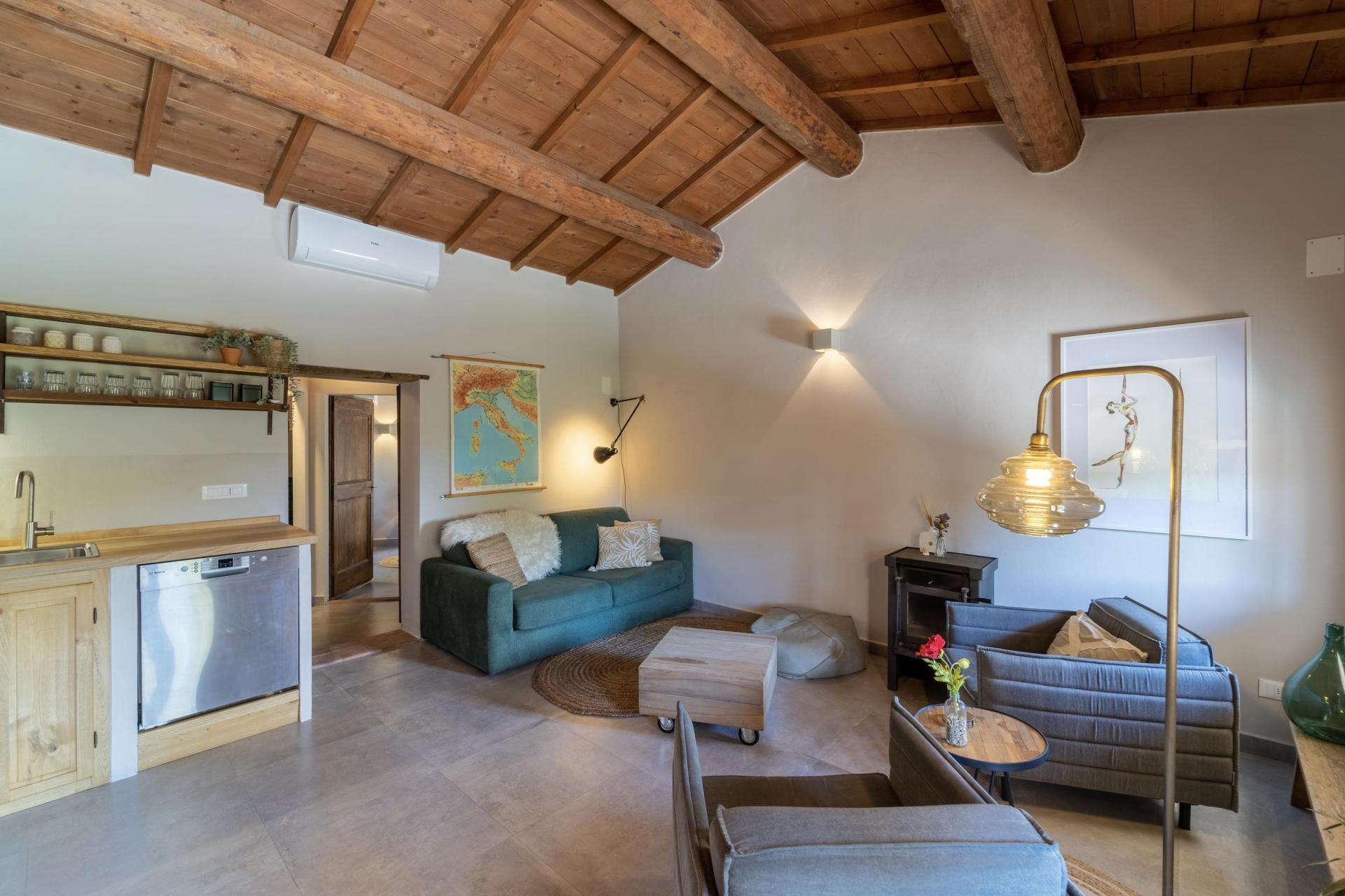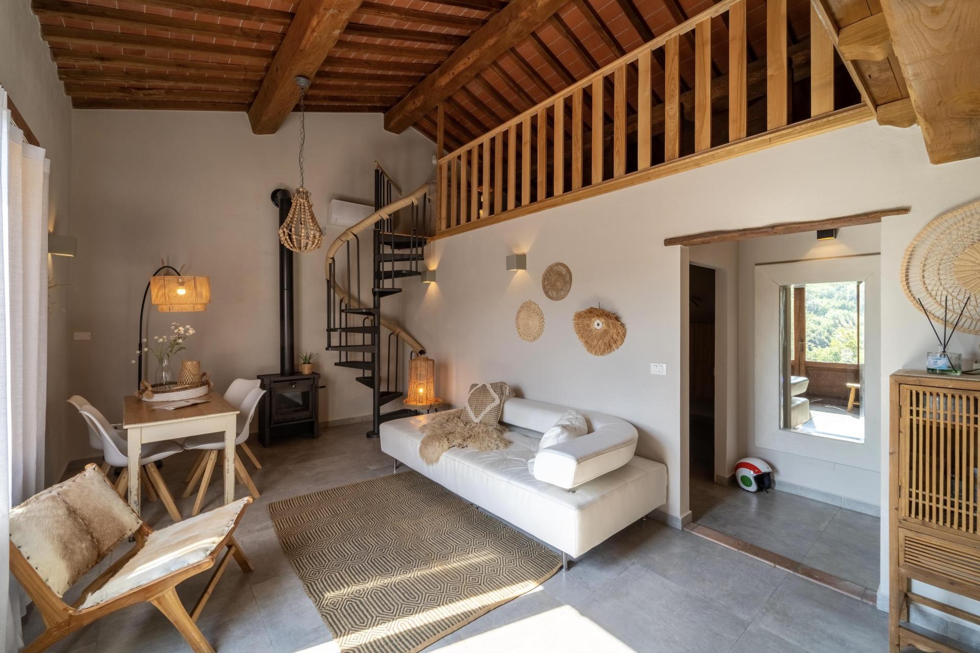L’agriturismo offre quattro appartamenti accoglienti da due a sei persone. Ogni appartamento è arredato con cura, con letti di alta qualità, bagni moderni e un piacevole mix di atmosfera toscana e comfort contemporaneo. Tutti dispongono di uno spazio esterno privato, che varia da terrazze panoramiche a graziosi angoli tra il verde.