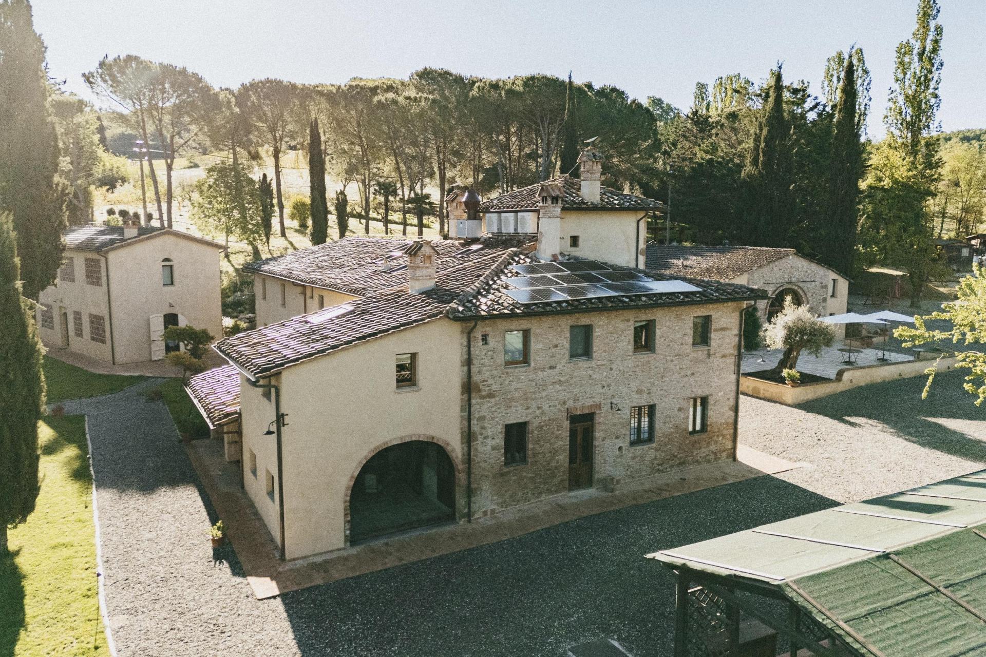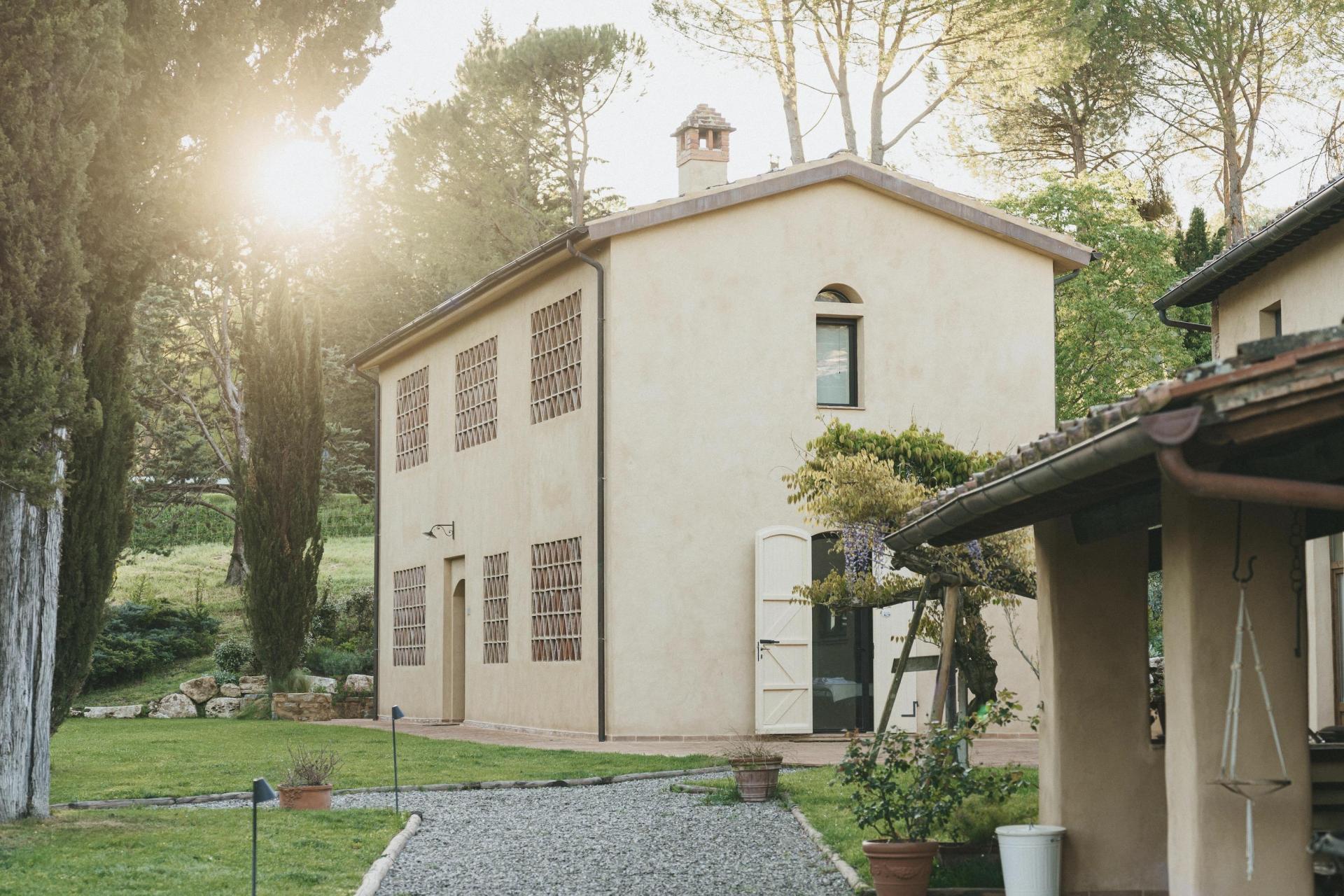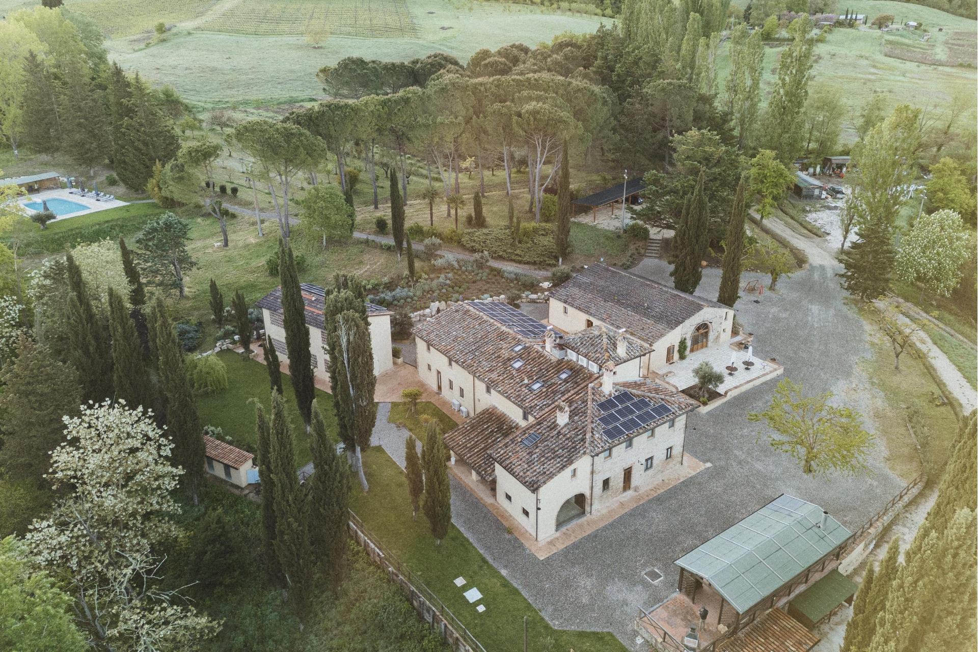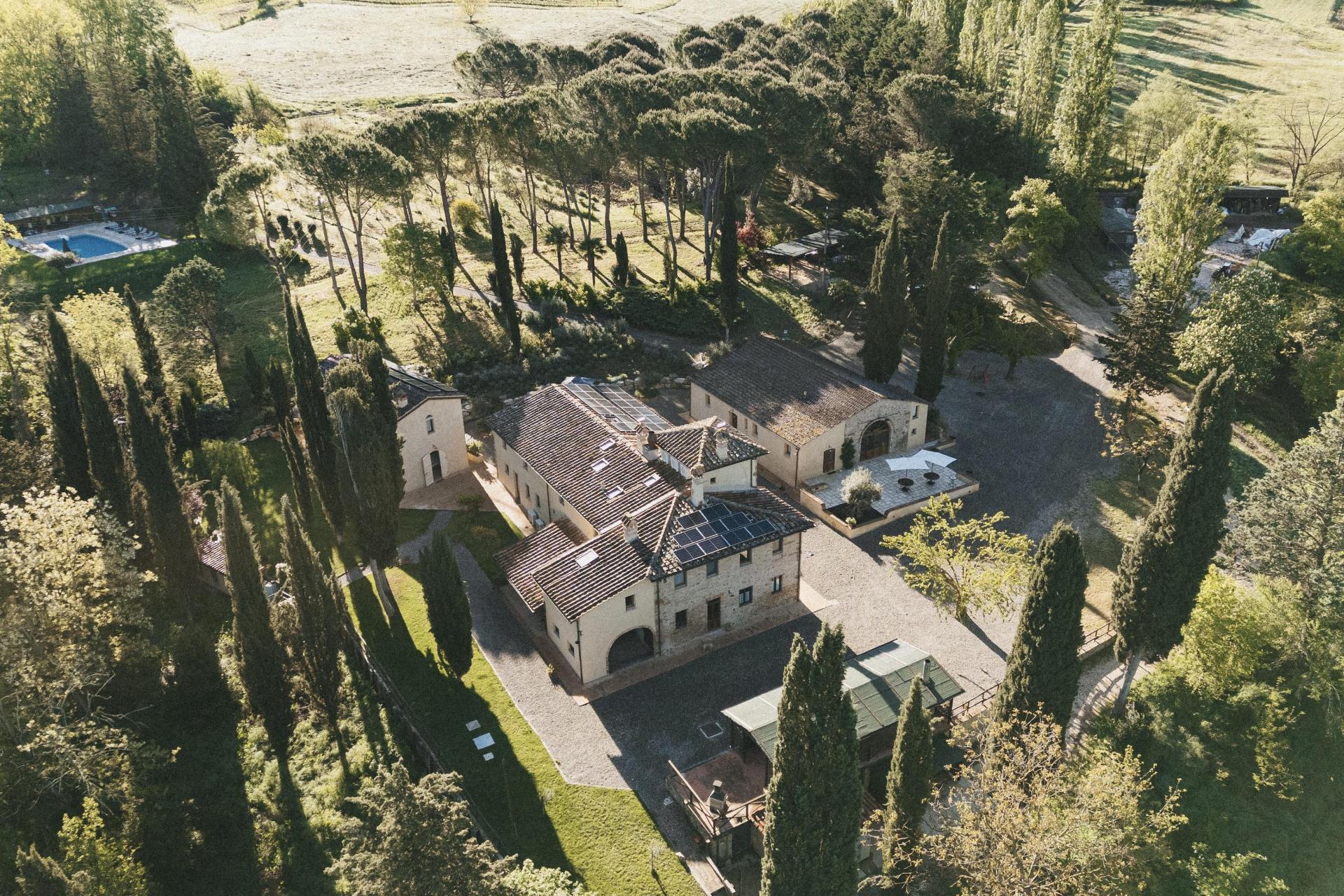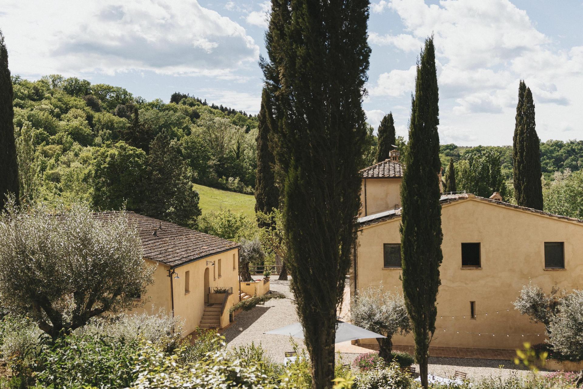 Questo agriturismo si trova immerso nella natura, in posizione centrale in Toscana, ma lontano dai percorsi più battuti. Gli ultimi 1,8 chilometri si percorrono lungo una strada bianca che si snoda tra oliveti e cipressi. Fa parte dell’esperienza: il ritmo rallenta, il paesaggio diventa sempre più silenzioso e la frenesia quotidiana resta alle spalle. Non è raro incontrare animali selvatici lungo il percorso – caprioli, volpi o scoiattoli fanno parte della vita di tutti i giorni.