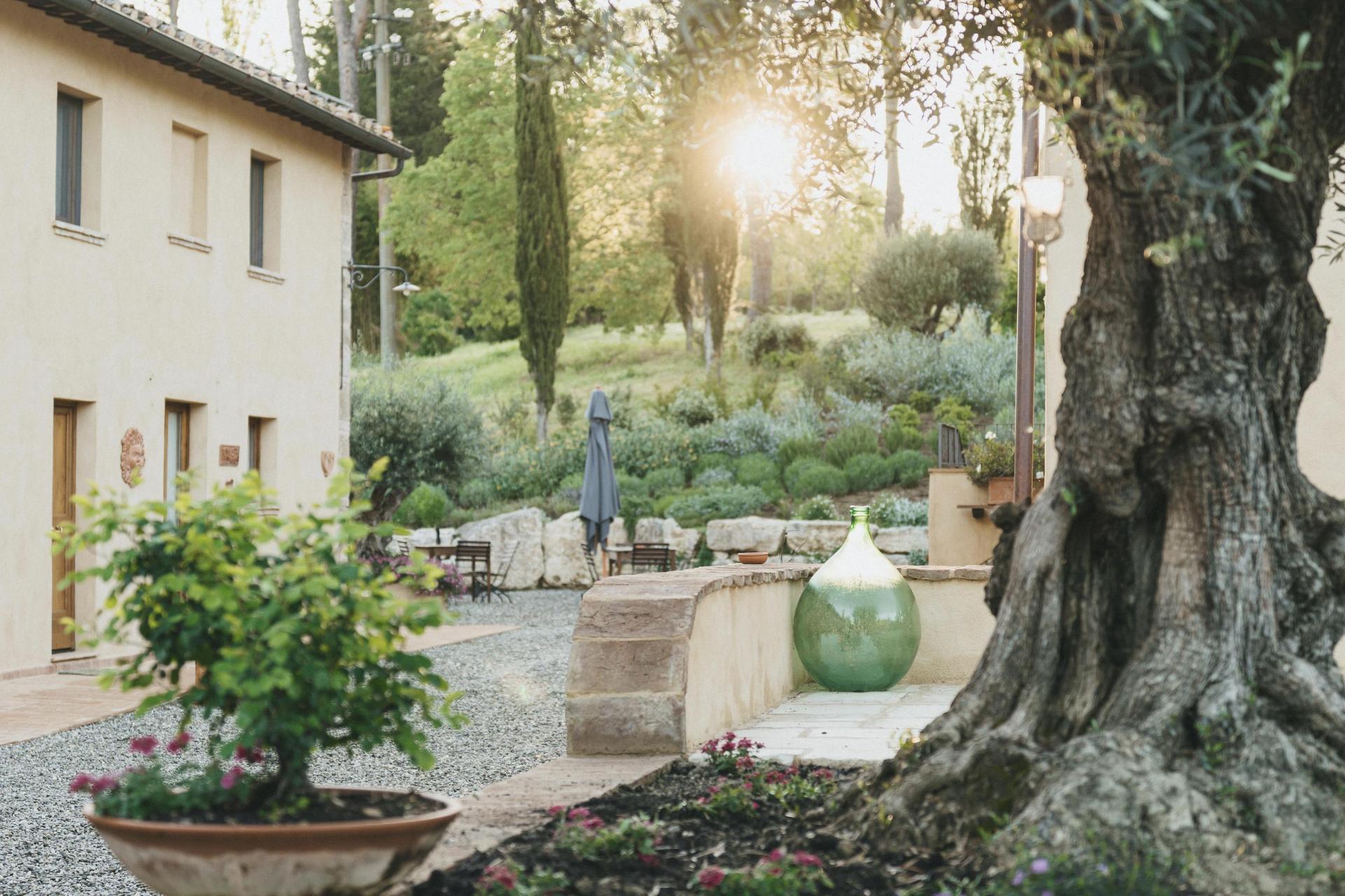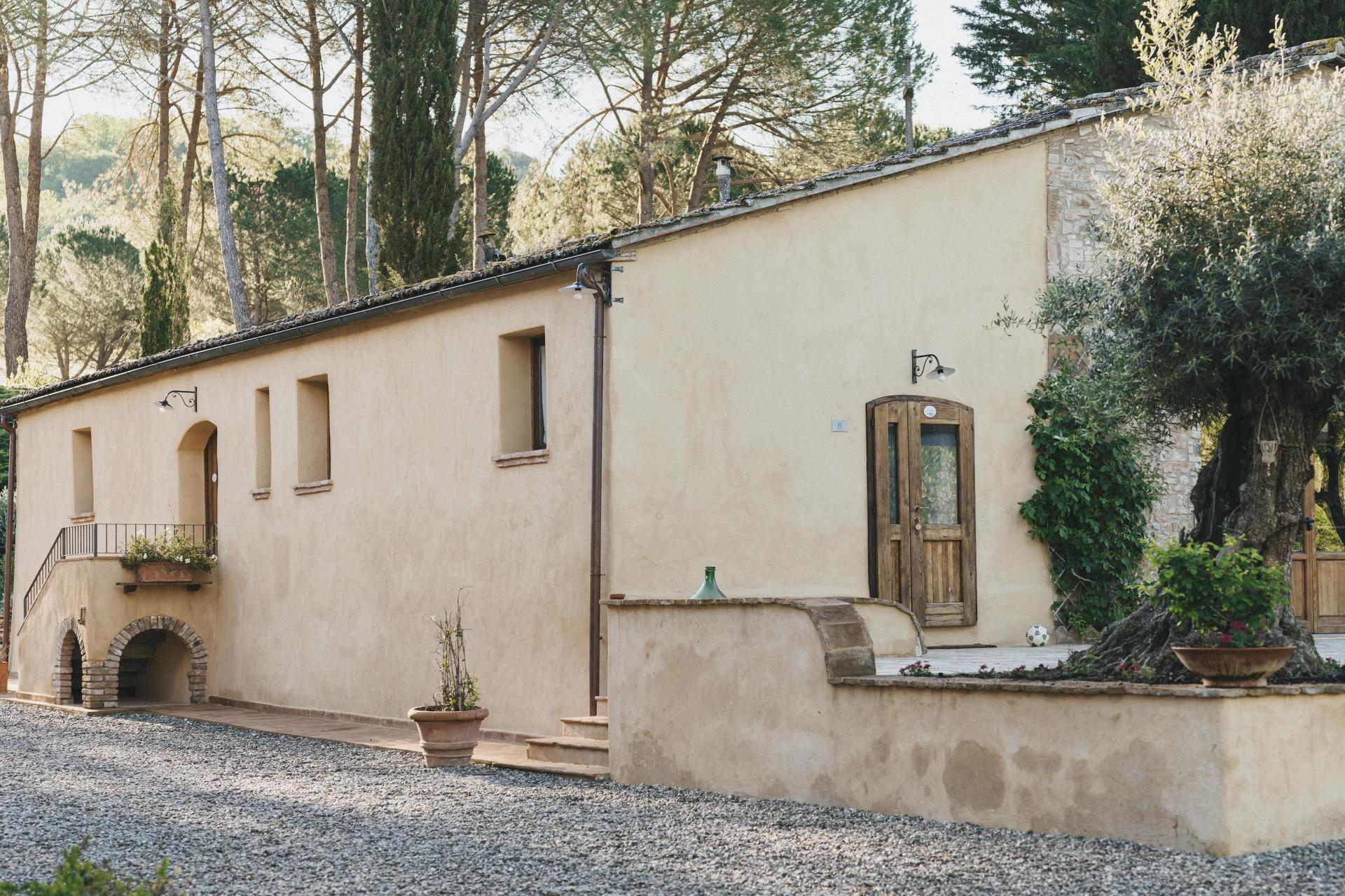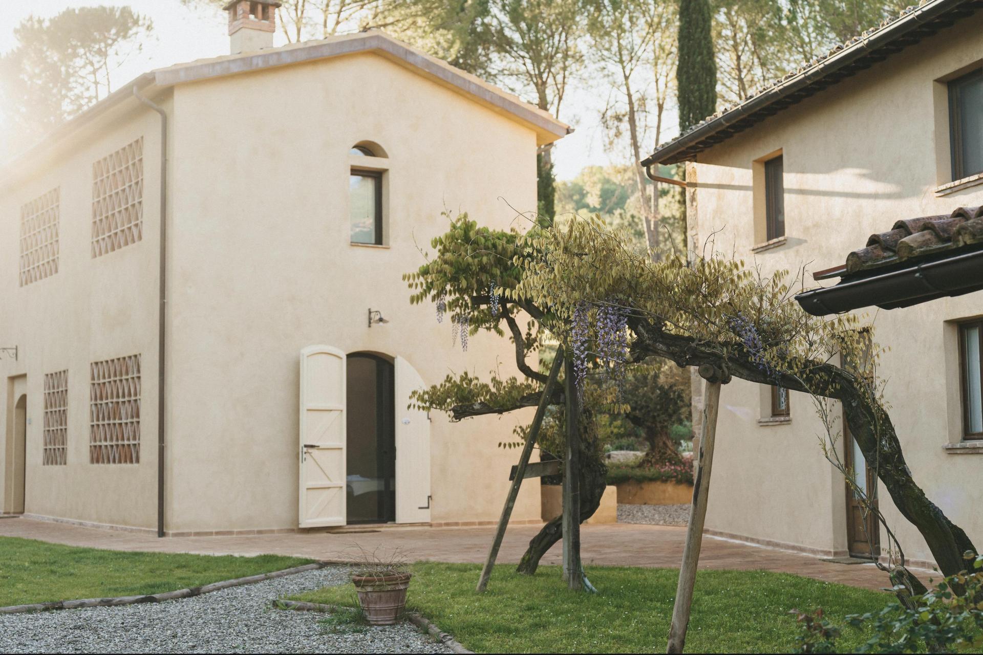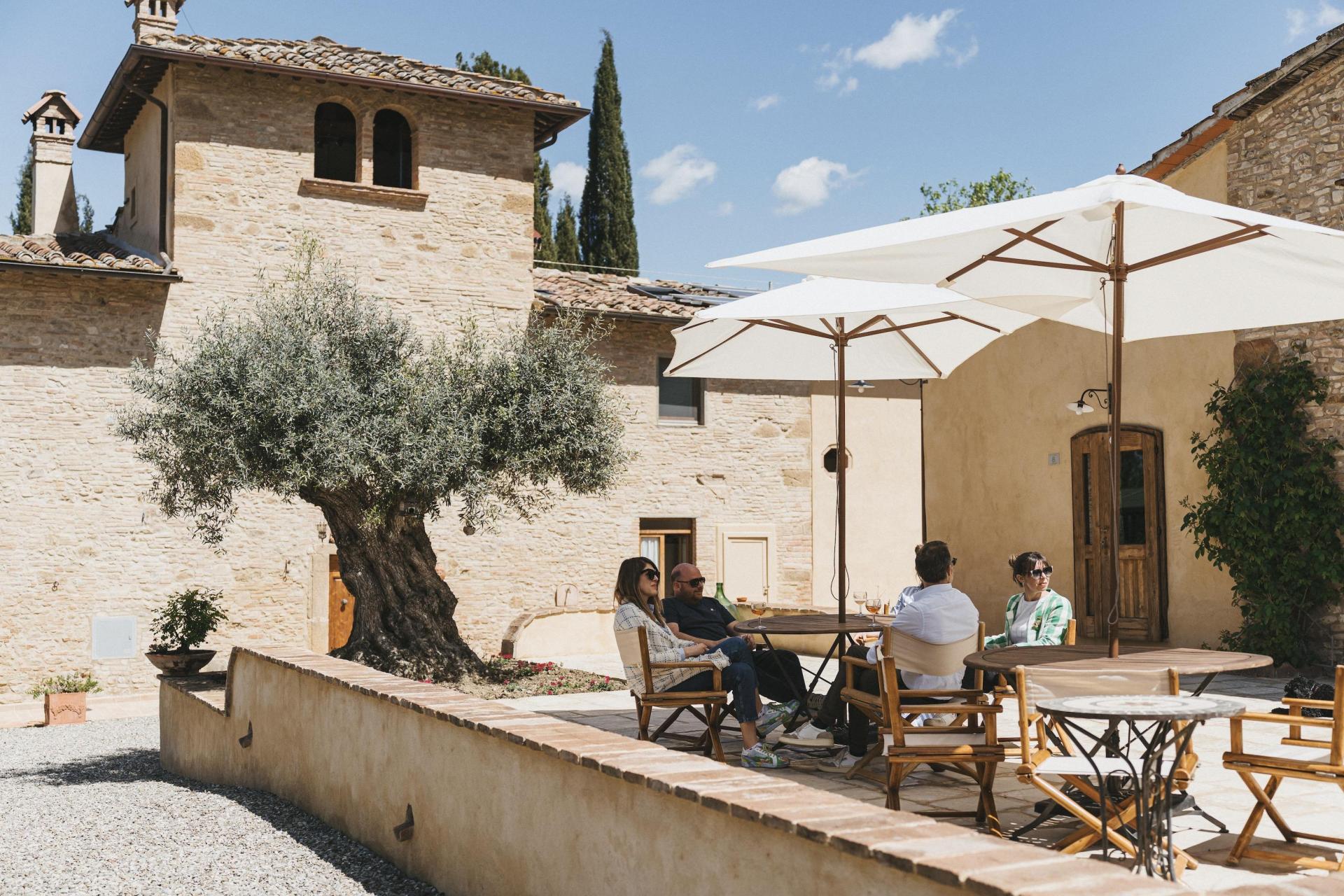L’agriturismo è composto da un piccolo borgo storico, ristrutturato negli ultimi anni con grande attenzione. Si è costruito sull’esistente, utilizzando materiali naturali come pietra, legno e terracotta. Il risultato è autentico e rustico, ma con il comfort che ci si aspetta oggi.
