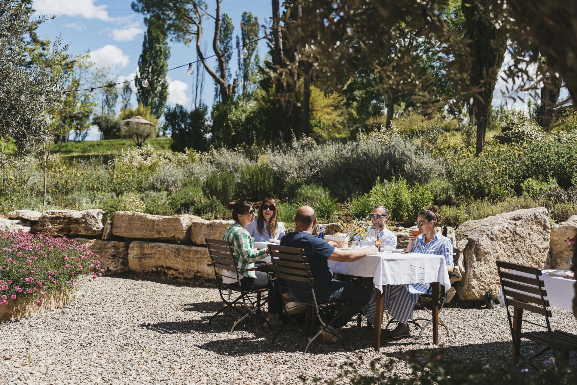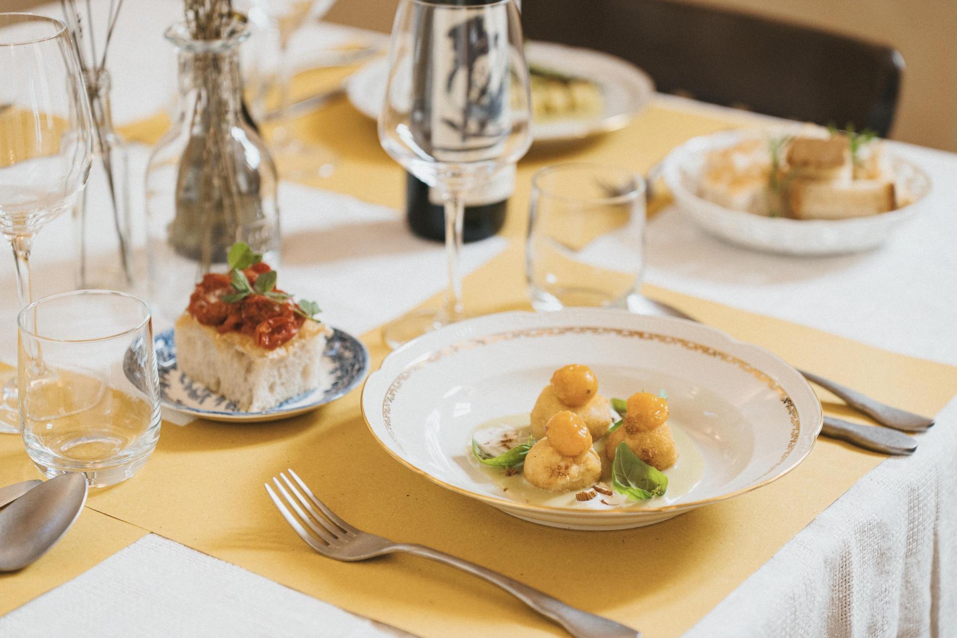 Il ristorante è un elemento centrale dell’esperienza. Dopo una giornata nel Chianti o una visita a Firenze o Siena, è piacevole poter rientrare e sedersi a tavola senza dover riprendere l’auto, magari iniziando con un aperitivo al tramonto e un calice di vino del territorio. La cucina si basa su prodotti di stagione provenienti dall’orto della struttura e da piccoli produttori locali. I piatti riflettono la tradizione toscana, con attenzione al gusto e alla semplicità, arricchita qua e là da un tocco contemporaneo. Sono disponibili opzioni vegetariane, vegane e senza glutine (da segnalare preferibilmente in anticipo). La carta dei vini è in gran parte dedicata a etichette locali, spesso biologiche o biodinamiche.